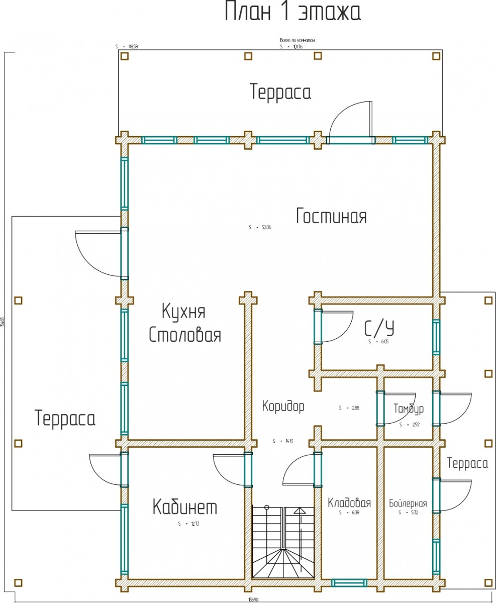 Площадь 1 этажа: 90 м